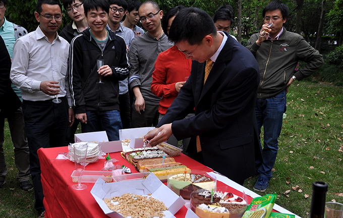 總經(jīng)理高峰為大家分蛋糕!希望我們的蛋糕一年比一年大!