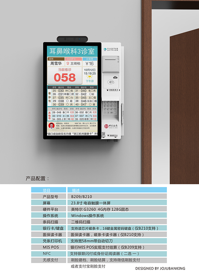 此產(chǎn)品為門診診間、住院大樓使用,結(jié)合醫(yī)院醫(yī)療信息系統(tǒng)(HIS), 實現(xiàn)提供患者門診掛號、結(jié)算等功能。