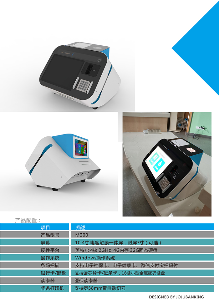 此產品為布放在住院部各病區護士站的吧臺,也可以部署在門診大樓的 導診臺/分診臺上使用,結合醫院醫療信息系統 (HIS), 實現提供住院患者直 接在各病區護士站的吧臺繳費結算、打印小票等功能。